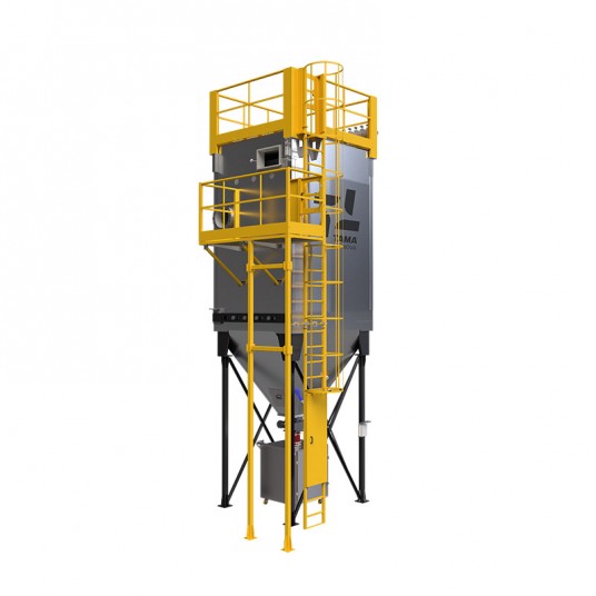Der Schlauchfilter Pulco Air HTV ist ein isoliertes Filtersystem mit Eintritt der staubigen Luft in eine Vorabscheidekammer und kontinuierlichem Staubaustrag durch eine Zellenradschleuse. Er verfügt über eine hitzebeständige Lackierung und Komponenten für hohe Temperaturen und ist bereits vorbereitet, um das Brandschutzsystem unterzubringen.